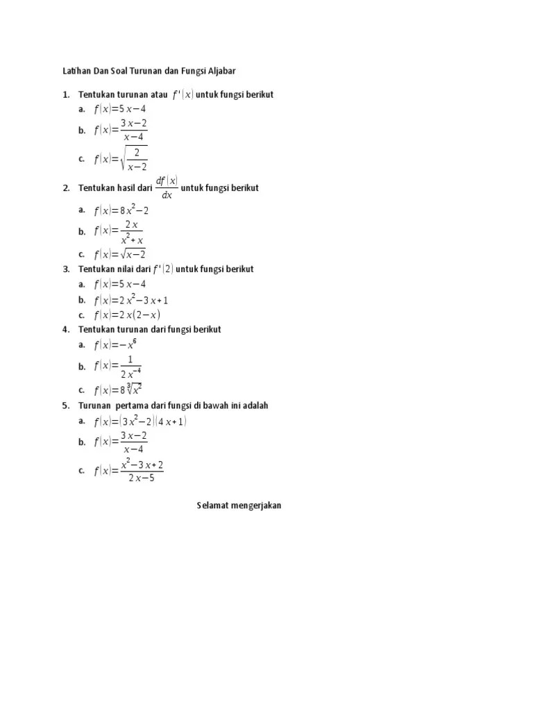 Latihan Soal Turunan Fungsi Aljabar.pdf / Soal Dan Jawaban Turunan Fungsi Komposisi Kumpulan Contoh Surat Dan Soal Terlengkap - Modul kegiatan belajar turunan fungsi aljabar.